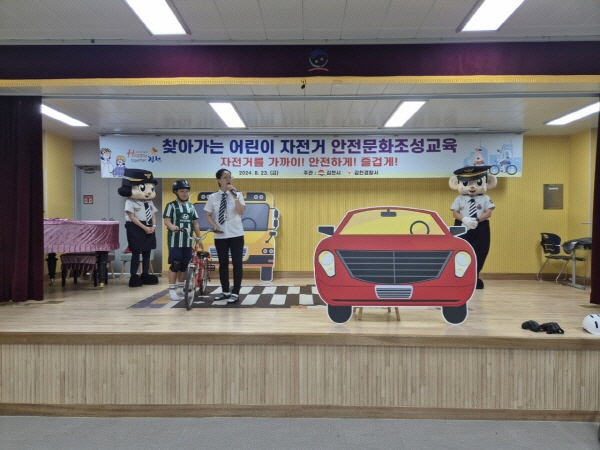 김천시와 김천경찰서에서 주최하고 김천청년회의소에서 협조하여 시행한 이번 교육은 관내 관계기관과 연계해 초등학교 어린이를 대상으로 자전거 안전에 대한 이론교육과 자동차 모형을 활용한 자전거 사고가 자주 나는 자동차 사각지대 등의 실제상황 연출 체험 등의 실기교육 위주로 한국도로교통공단 전문 강사를 초빙해 실시했다.