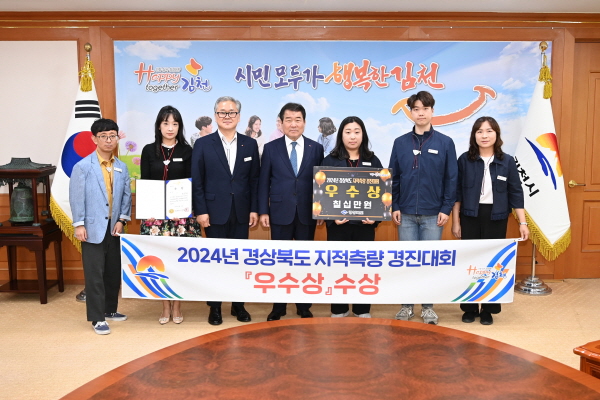 (경북=NSP통신) 김대원 기자 = 지적공무원의 역량 강화와 전문성 향상을 위해 경상북도청에서 개최한 ‘2024 지적측량 경진대회’에서 경북 김천시가 작년에 이어 2년 연속 우수상을 받았다.