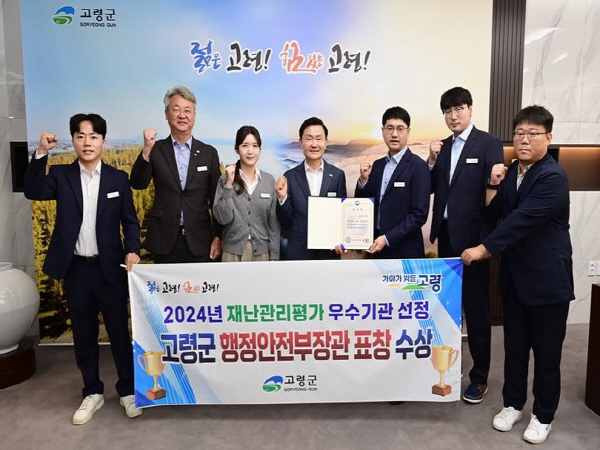 (경북=NSP통신) 김대원 기자 = 고령군(군수 이남철)이 행정안전부가 실시한 ‘2024년도 재난관리평가’ 결과 ‘우수기관’으로 선정돼 장관 표창과 함께 특별교부세 8800만 원 포상금을 받았다.