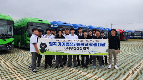 이날 견학 프로그램은 칠곡군에 소재한 경북기계명장고등학교 학생을 대상으로 철도차량·전기버스 제작 전문기업인 우진산전 김천공장 현장을 견학하고 취업 프로그램을 진행했다.