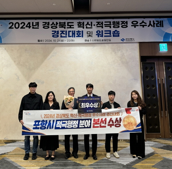공직사회의 혁신 및 적극행정 문화를 확산하고자 개최된 이번 경진대회에서 포항시는 도, 시군 및 지방공공기관에서 제출한 총 27건의 적극행정 사례 중 최우수상을 수상해 행정안전부 주관 ‘2024 적극행정 우수사례 경진대회’에도 추천됐다.