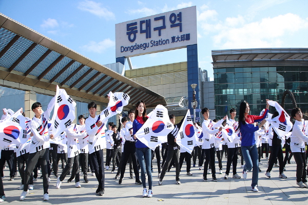(경북=NSP통신) 김대원 기자 = 대구광역시는 25일 독도의 날을 맞아 오전 9시 30분에 동대구역 앞 박정희 광장에서 대륜중학교 학생, 미스 대구·경북 등 130명이 참여한 가운데 독도사랑 플래시몹을 펼쳤다.