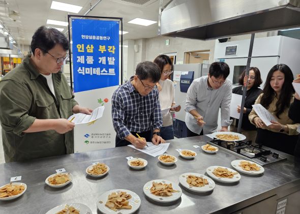 ‘인삼부각 제품 개발 시험’은 경상북도 농업기술원과 영주시가 수삼 소비 확대와 인삼 재배 농가의 소득 증대를 위해 추진하는 연구다.