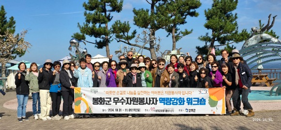 (경북=NSP통신) 김오현 기자 = 봉화군종합자원봉사센터는 우수자원봉사자 40명과 함께 지난 31일부터 11월 1일까지 1박 2일간 일정으로 강원도 일원에서 ‘2024년 봉화군 우수자원봉사자 역량강화 워크숍’을 개최했다.