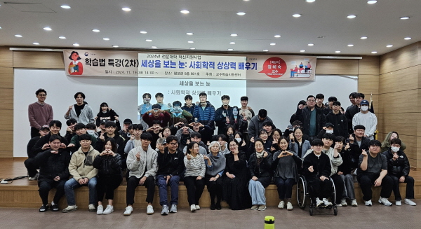 이번 학습법 특강은 대학혁신지원사업의 일환으로 진행됐으며 '세상을 보는 눈: 사회학적 상상력 배우기'라는 주제로 정혜숙(금오공과대학교)교수가 강의했다. 강의에서는 사회학적 상상력과 메타인지의 중요성뿐만 아니라 학습 및 사고 능력을 키우는 구체적인 방법도 다뤄졌다.