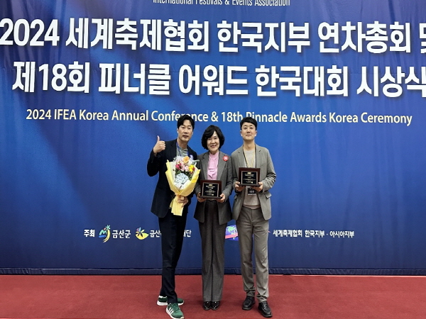 시는 20일부터 21일까지 충남 금산군 다락원에서 열린 2024 세계축제협회 아시아지부 연차총회 및 제18회 피나클 어워즈 한국대회에서 문화유산활용 축제 및 글로벌교류 등 2개 부문에서 금상을 수상했다.