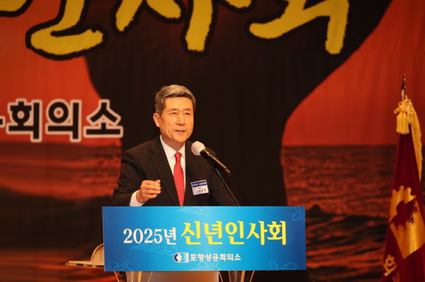 (경북=NSP통신) 조인호 기자 = 이강덕 포항시장은 6일 효자아트홀에서 열린 ‘2025년 포항상공회의소 신년인사회’에 참석해 지속가능한 포항 지역의 미래를 설계하기 위해 기반을 다지는 것에 올 한 해 시정 역량을 집중해 나갈 것이라고 밝혔다.