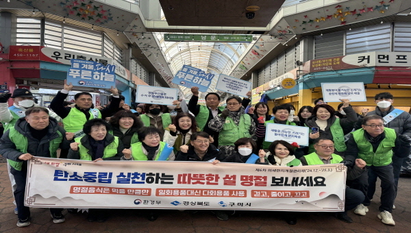 (경북=NSP통신) 조인호 기자 = 구미시는 지난 21일 새마을중앙시장에서 대구지방환경청 직원과 자연보호협의회 회원 등 50여 명이 참여한 가운데 ‘친환경 설명절 보내기’ 캠페인을 실시했다.