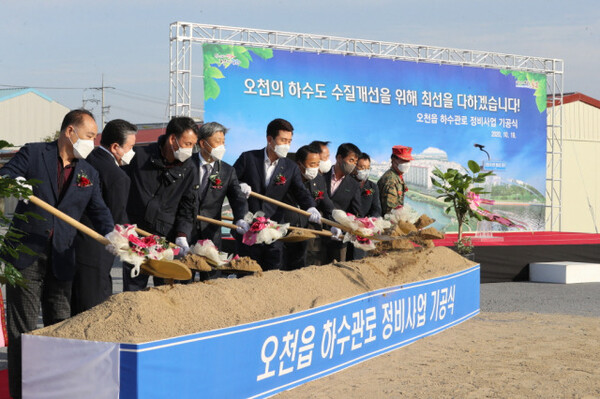 오천읍 하수관로 정비공사는 491억원을 투입해 오천읍 일대 하수관로 52km와 배수시설 3056개소를 정비하는 사업으로 시공은 A사가 맡았고, 하도사로 1구간은 B사, 2구간은 C사가 참여했다.