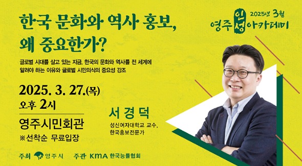 (경북=NSP통신) 김오현 기자 = 영주시 대표 인성 교육 프로그램인 ‘영주인성아카데미’가 오는 27일 오후 2시 영주시민회관에서 올해 첫 강연을 시작한다.