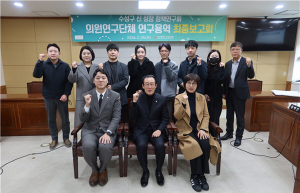 (경북=NSP통신) 김대원 기자 = 대구 수성구의회 의원연구단체 ‘수성구 신 성장 정책연구회’는 지난 25일 의회 2층 회의실에서 ‘지속 가능한 발전을 위한 미래 신성장 동력 발굴’ 연구용역 최종보고회를 개최했다.