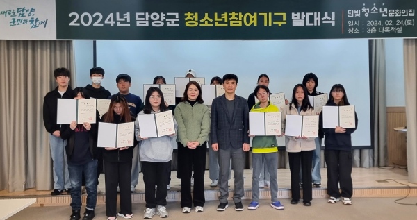 군 관계자는 “청소년 참여기구의 적극적인 활동으로 청소년과 담양군이 함께 긍정적인 변화를 이루는 한 해가 되길 바란다”며 “미래를 이끌어갈 청소년이 주체적으로 만드는 담양을 실현할 수 있도록 지원을 아끼지 않겠다”고 전했다.