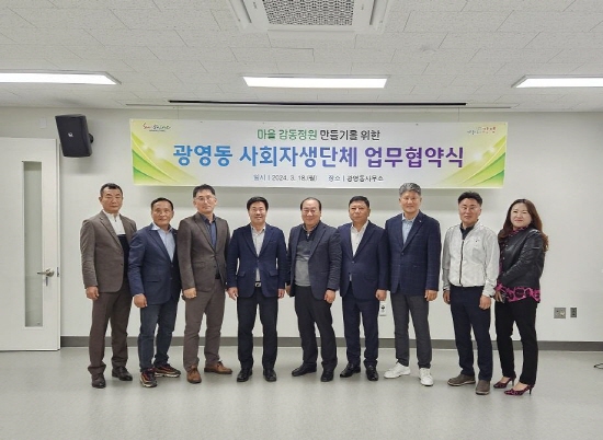 이번 업무협약을 시작으로 광영동과 동 통장협의회 등 9개 기관·단체는 지역 주민들과 함께 3월 20일 도로변 및 광영동사무소 주변 공한지 등에 봄꽃을 식재할 예정이다.