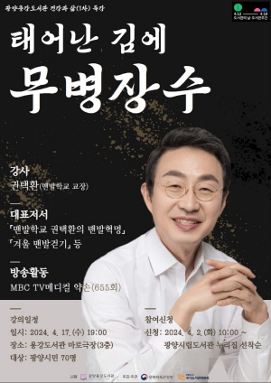 (전남=NSP통신) 김성철 기자 = 광양용강도서관은 2024년 도서관의 날‧도서관주간을 기념해 문화체육관광부에서 주관하는 ‘우리동네 도서관 프로젝트’ 공모에 선정돼 작가 초청 강연을 실시한다고 밝혔다.