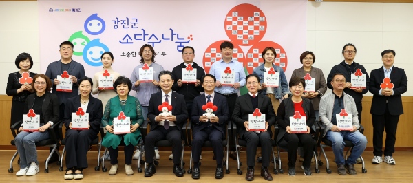 강진원 군수는 “오늘 이 자리가 지역 사회에 온기를 더하는 나눔이 울려 퍼지는 큰 파장이 되길 바란다”며 “ ‘소다수 나눔’을 통해 소외된 이웃이 없는 따뚯한 강진군이 되도록 최선을 다하겠다”고 말했다.