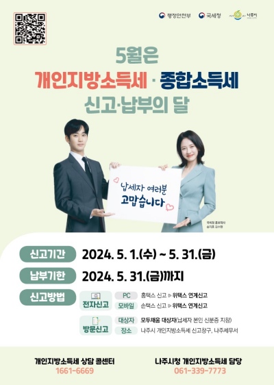 (전남=NSP통신) 김용재 기자 = 나주시(시장 윤병태)가 이달 말까지 지난 2023년 귀속 종합소득세와 개인지방소득세 확정신고 기간을 운영한다고 8일 밝혔다.