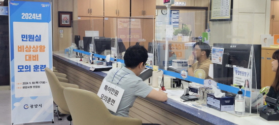 (전남=NSP통신) 김성철 기자 = 광양시는 지난 달 30일 시청 민원실에서 중마지구대와 합동으로 안전한 민원실 근무환경을 조성하기 위해 ‘민원실 비상상황 대비 모의훈련’을 실시했다.