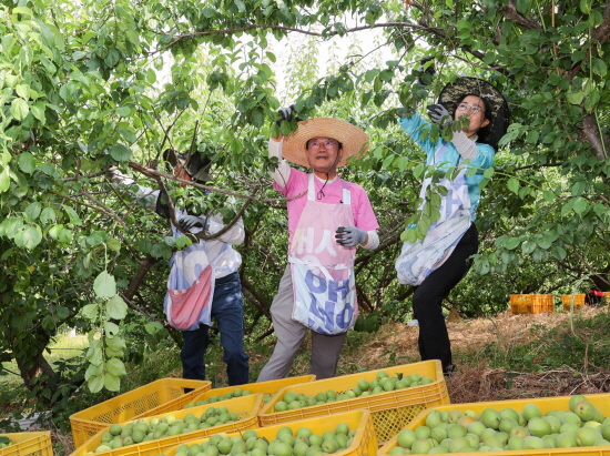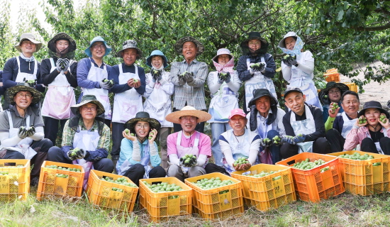 시는 5월 말부터 일손 부족으로 어려움을 겪고 있는 지역 내 고령농가, 영세농가, 장애농가 등을 대상으로 공무원, 유관기관, 봉사단체와 기업들이 한마음으로 매실 수확 작업을 돕고 있다.