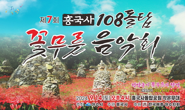 (전남=NSP통신) 서순곤 기자 = ‘흥국사 108돌탑 꽃무릇 음악회’가 오는 14일 오후 4시부터 7시까지 여수 흥국사 일원에서 개최된다.