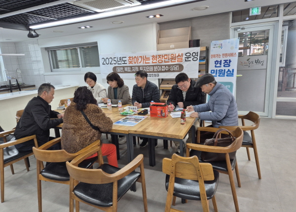 현장민원실에서는 생활불편 신고 등 일반 민원 상담 ▲지목변경, 토지 합병, 지적 재조사 등 지적 민원 처리 ▲개발행위, 건축․환경 인허가 등 복합민원 접수 ▲부동산, 토지관리 등의 토지 관련 민원 상담 등을 진행한다.