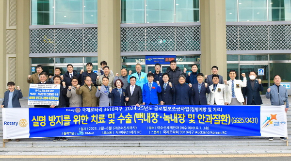 (전남=NSP통신) 서순곤 기자 = 여수시는 여수 21세기 로타리(회장 지성호)가 지난 18일 저소득층을 위한 안과 질환 치료비 4320만 원을 후원했다고 밝혔다.