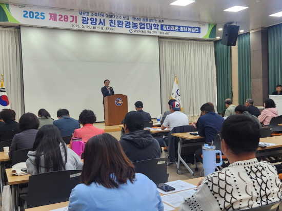 (전남=NSP통신) 김성철 기자 = 광양시는 지난 25일 농업인교육관에서 광양시 전문농업인 육성을 위한 제28기 친환경농업인대학 개강식을 교육생 48명이 참석한 가운데 개최했다고 밝혔다.