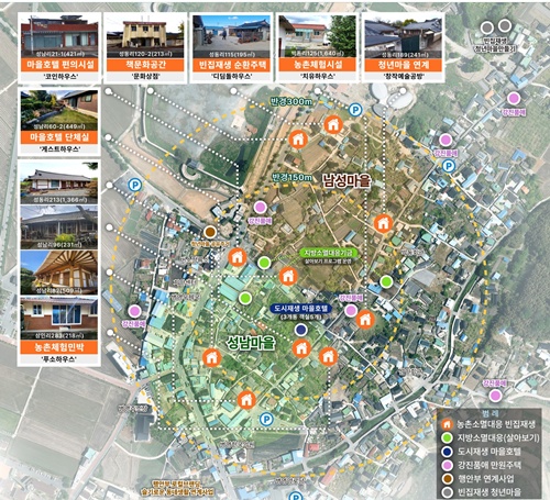 농촌빈집재생지원사업은 빈집이 밀집된 지역을 대상으로 민간과 지자체가 협력해 규모화 있게 정비하는 것으로, 농촌에 생활인구가 유입될 수 있도록 빈집을 주거·워케이션, 문화·체험, 창업 공간 등으로 구성하는 것을 목적으로 하고 있다.