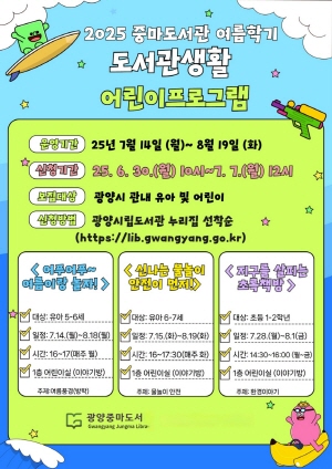 (전남=NSP통신) 김성철 기자 = 광양중마도서관이 여름학기를 맞아 ‘2025년 여름학기 도서관 생활 어린이 프로그램’ 수강생을 모집한다.