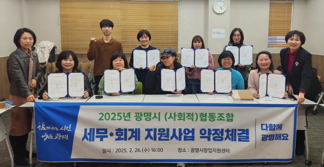 시는 26일 광명시창업지원센터에서 사회적협동조합과 협동조합 8개 사와 세무·회계 기장 수수료 지원을 위한 약정 체결했다.