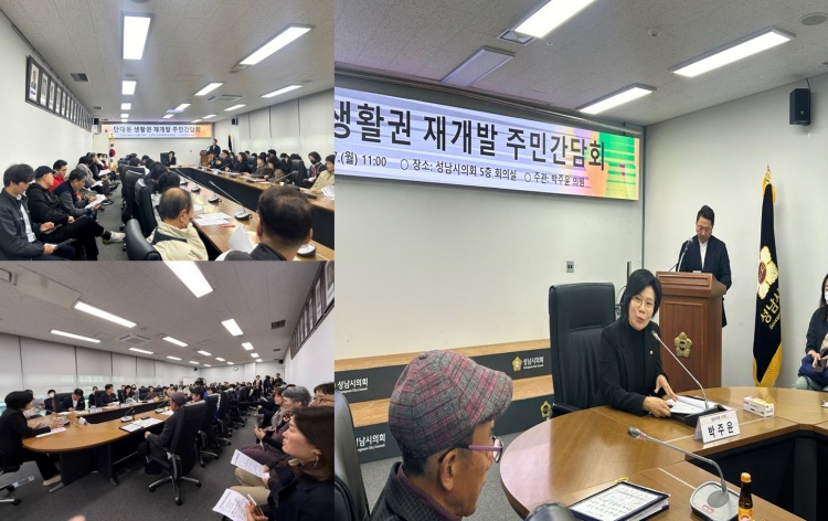 박주윤 의원은 “성남시와 성남시의회는 주민 의견을 지속적으로 경청하고 재개발 추진 과정에서 발생하는 문제들을 적극적으로 해결해 나가야 한다”고 밝혔다.
