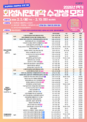 (경기=NSP통신) 조현철 기자 = 경기 화성시(시장 정명근)가 2026년 1학기 화성시민대학 수강생을 다음 달 2일부터 10일까지 선착순 모집한다.
