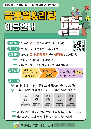 한편 글로벌도서관에서는 해당 온라인 콘텐츠를 활용한 ‘영어 원서 천 권 읽기’ 프로그램을 3월부터 진행할 예정이다.