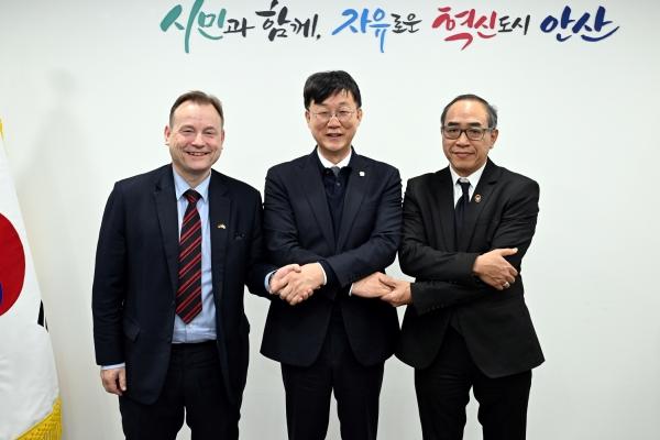 이날 오전 안산시에 게오르크 슈미트 주한독일대사와 타니 생랏 주한태국대사를 비롯한 독일·태국 대사 방문단(독일 경제 참사관, 태국 투자관 및 경제부서장 등)과 양국 기업 대표단이 공식 방문했다. 이들은 안산시청과 안산사이언스밸리지구를 순차 방문해 ASV 개발계획 브리핑과 현장 라운딩을 진행했다.