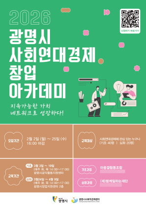 (경기=NSP통신) 김여울 기자 = 경기 광명시(시장 박승원)가 ‘2026년 광명시 사회연대경제 창업 아카데미’ 수강생을 오는 25일까지 모집한다.