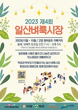 한편 이번 행사는 자원순환과 나눔에 관심 있는 누구나 참여할 수 있고 고양시 학생들과 일산서부경찰서, 고양시기업·경제인연합회, 한국마사회 일산지사 등 지역기관들도 함께 참여할 예정이다.