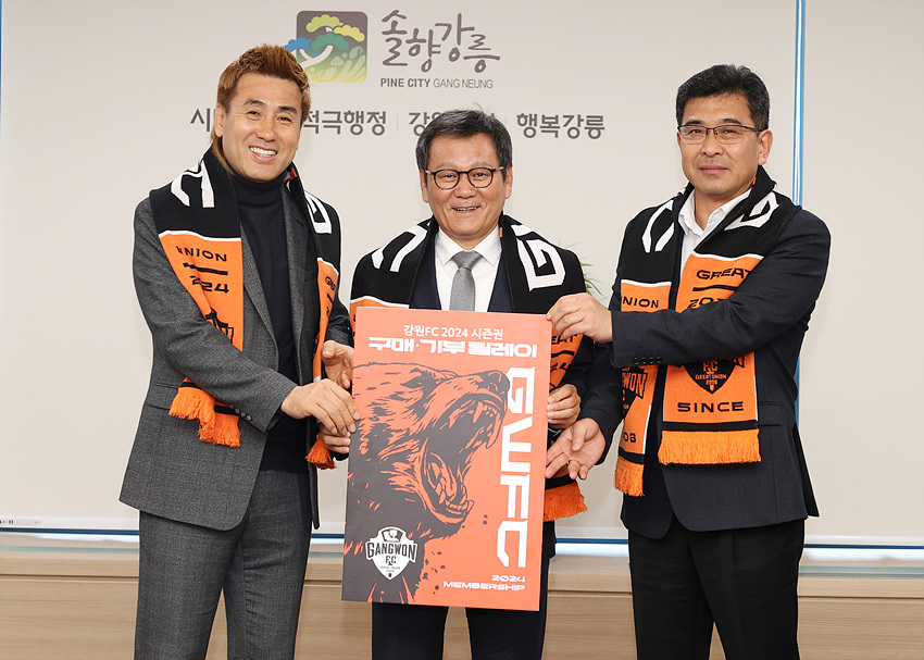 7일 시즌권 단체구매 릴레이는 김홍규 시장을 선두로 강원FC 대표를 비롯한 국·과장들이 참여하고 앞으로 관내 단체들과 강릉시민들의 구매까지 이어질 것으로 기대하고 있다.