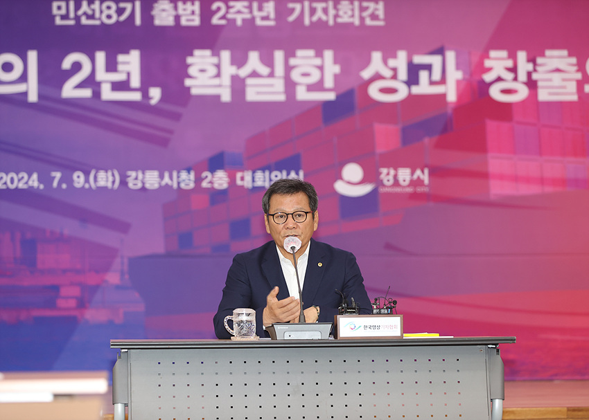 김 시장은 민선 8기 전반기의 주요 성과로 옥계항의 무역항 기능 강화, 천연물바이오 국가산단 후보지 선정, 2026 ITS 세계총회 및 세계마스터즈탁구선수권대회 유치 등을 꼽았다. 또한 도청 제2청사 유치, 유네스코 미식창의도시 가입, 국립국악원 강원분원 설립 가시화 등의 성과도 강조했다.