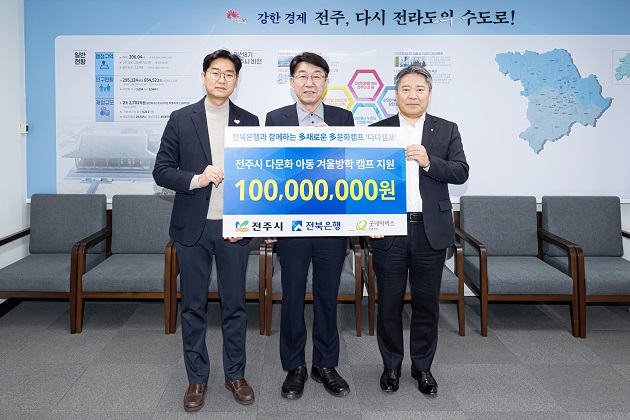 (전북=NSP통신) 김광석 기자 = JB금융그룹 전북은행(은행장 백종일)은 22일 전주시청 시장실에서 전주시 다문화 아동을 위한 겨울방학 캠프 지원 후원금 1억원 전달식을 실시했다.