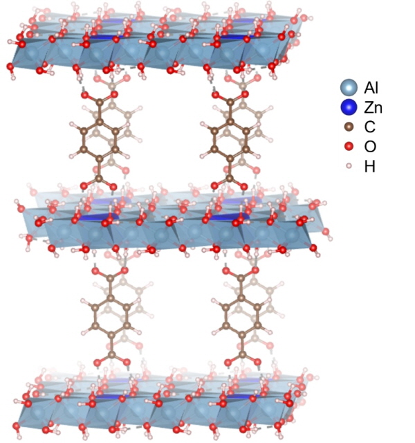 이 물질은 층상구조를 가진 수산화알루미늄의 층간에 유기물 분자를 넓은 간격으로 삽입시켜 최대한의 층간 공간을 확보하는 형태이며, 층간의 빈 공간에 들어간 분자가 내부표면과 결합해 안정되게 흡착 혹은 포집된다.