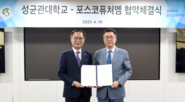 이날 협약에 따라 포스코퓨처엠은 성균관대에 올 하반기부터 배터리소재 석·박사 과정 ‘e-Battery Track’ 운영을 시작한다.