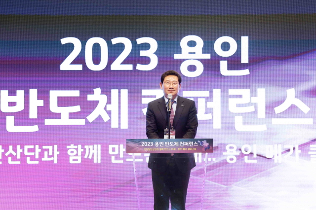 NSP통신-이상일 용인특례시장이 11일 기흥구 구갈동 ICT밸리 컨벤션 플로리아 홀에서 열린 2023 용인 반도체 컨퍼런스에서 축사를 하고 있다. (사진 = 용인특례시)