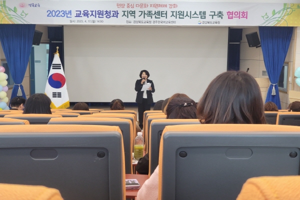 (경북=NSP통신) 조인호 기자 = 경상북도교육청(교육감 임종식)은 지난 17일 경상북도교육청 경주한국어교육센터에서 ‘2023 교육지원청과 지역 가족센터 지원시스템 구축을 위한 협의회’ 를 개최했다고 밝혔다.