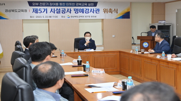 (경북=NSP통신) 조인호 기자 = 경상북도교육청(교육감 임종식)은 22일 안전하고 쾌적한 교육환경 조성 및 시설공사 예방감사의 효과를 강화하기 위해 시설분야 외부전문가 12명을 ‘제5기 시설공사 명예감사관’ 으로 위촉했다고 밝혔다.