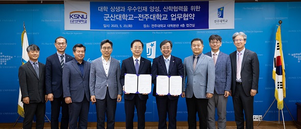 (전북=NSP통신) 김광석 기자 = 전주대학교(총장 박진배)는 23일 대학본관 4층 접견실에서 군산대학교와 업무협약을 체결했다고 밝혔다.