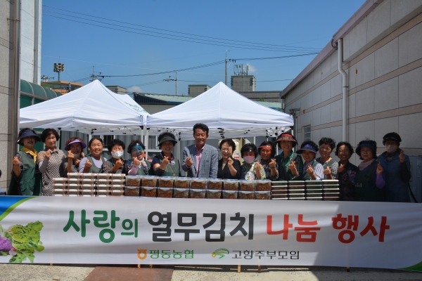 지역농산물 소비촉진과 지역사회 소외계층 나눔을 위해 마련된 이 날 행사에는 최삼규 조합장을 비롯한 고향주부모임 회원 25명이 참여했으며, 열무김치 및 밑반찬 2종을 직접 준비해 취약계층에 전달하고 안부를 살피는 등 따뜻한 이웃사랑 나눔을 실천했다.