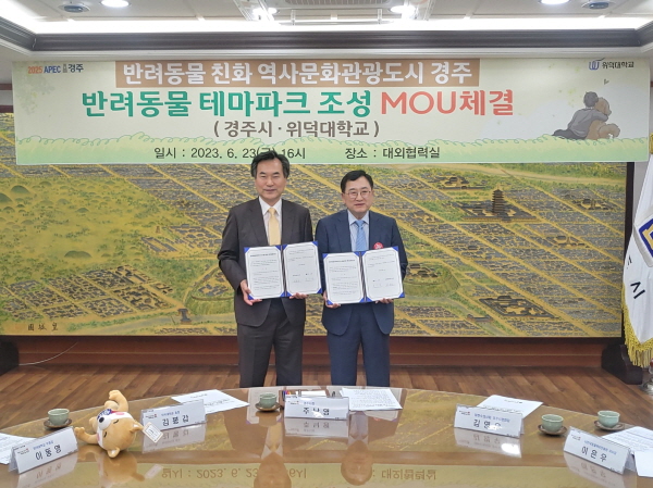 지난 23일 위덕대학교와 경주시는 반려동물 테마파크 조성을 위한 업무협약을 체결했다.