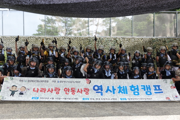 경상북도안동교육지원청은 지난 7일 오후2시 경상북도독립운동기념관에서 ‘2023 나라사랑안동사랑 역사체험캠프’ 퇴소식을 가졌다. (사진 = 안동교육지원청)