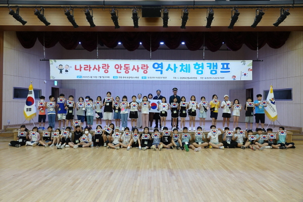 ‘2023 나라사랑안동사랑 역사체험캠프’는 지난 4월 10일부터 7월 7일까지 모두 23회, 회당 1박 2일씩 실시됐으며, 참가 대상은 안동 소재 초등학교 30개교 4학년 학생 1298명으로 1박 2일 동안 여러 가지 체험을 통해서 선조들의 독립운동 정신과 안동지역 독립운동가의 삶을 배웠다.