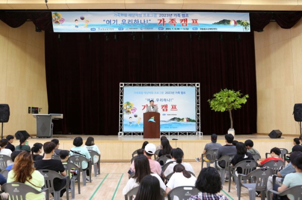 교육복지안전망 사업으로 실시된 캠프는 가족 유대감 형성을 통한 가족기능 향상을 목적으로 개최됐으며 해양환경레이스, 가족유대 프로그램, 영화제, 수(水)치유 프로그램 등 다양한 활동으로 구성되어 진행됐다.