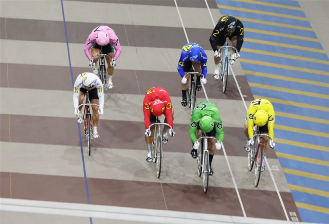 NSP통신-광명스피돔에서 경주에 출전한 우수급 선수들이 결승선을 앞두고 전력을 다하고 있다. (사진 = 국민)